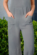 Pattern type: Solid Style: Casual Features: Pocketed Neckline: Square neck Length: Long Sleeve length: Sleeveless Sleeve type: Sleeveless Material composition: 100% cotton Stretch: No stretch Care instructions: Machine wash cold. Tumble dry low. Imported Product...