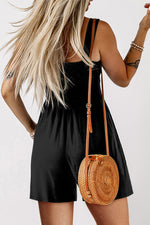 Pattern type: Solid Style: Chic Features: Pocketed, Smocked Neckline: Square neck Length: Short Sleeve length: Sleeveless Sleeve type: Sleeveless Material composition: 100% polyester Stretch: Slightly stretchy Care instructions: Machine wash cold. Tumble dry low. Imported...