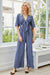 Size: True to size Pattern: Solid Feature: Elbow sleeves, tie front, elastic waist, wide leg Neckline: V-neck Sheer: No Stretch: No stretch Measurements: S: shoulder 14 in, bust 39 in, waist 24 in, hip 42...