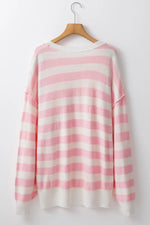 Exposed Seam Striped Round Neck Long Sleeve Sweater