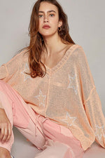 This V-Neck Long Sleeve Star Print Knit Top is a charming and playful addition to your wardrobe. The v-neck design adds a flattering touch to this cozy knit top. Featuring a whimsical star print pattern, this top offers a fun and stylish look. The long sleeves provide extra warmth while still maintaining a trendy silhouette. Pair it with jeans or leggings for a casual and chic outfit. Elevate your style with this delightful V-Neck Long Sleeve Star Print Knit Top for a fashionable and comfy ensemble.