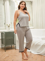 Sizing category: Plus Picture style: Studio Number of pieces: 2 Pattern type: Solid Style: Minimalist Features: Lace Neckline: V-neck Length: Cropped Sleeve Length: Sleeveless Sleeve type: Sleeveless Material: 60% polyester, 35% viscose, 5% elastane Stretch:...