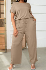 Sizing category: Plus Pattern type: Solid Style: Casual, chic Features: Drawstring, pockets Neckline: Round neck Length: Long Sleeve length: Short sleeves Sleeve type: Regular sleeves Material: 95% rayon, 5% spandex Stretch: Highly stretchy Sheer: No...