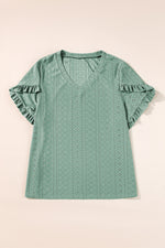 Features: Frill, Eyelet Sheer: Opaque Stretch: No stretch Material composition: 95% polyester, 5% elastane Care instructions: Machine wash cold. Tumble dry low. Imported Product Measurements (Measurements by inches) & Size Conversion Size US Bust Shoulder...