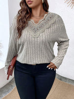 Features: Lace detail Sheer: Opaque Stretch: No stretch Material composition: 100% polyester Care instructions: Machine wash cold. Tumble dry low. Imported Product measurements:1XL:Bust 42.52 in, Top Length 26.38 in, Sleeve Length 22.83 in2XL:Bust 44.88 in,...