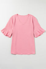 Features: Ruffled Sheer: Opaque Stretch: Slightly stretchy Material composition: 97% polyester, 3% elastane Care instructions: Machine wash cold. Tumble dry low. Imported Product Measurements (Measurements by inches) & Size Conversion Size US Bust Shoulder Sleeve...