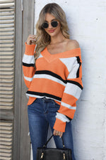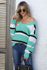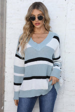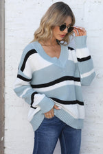 Pattern type: Color block Style: Casual Features: Ribbed Neckline: V-neck Length: Long Sleeve length: Long sleeves Sleeve type: Regular sleeves Material composition: 100% polyester Stretch: Moderate stretch Care instructions: Hand wash cold. Do not tumble...