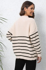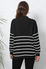 Pattern type: Striped Style: Casual Features: Zipper Neckline: Mock neck Length: Long Sleeve length: Long sleeves Sleeve type: Regular sleeves Material composition: 100% polyester Stretch: Moderate stretch Care instructions: Hand wash cold. Do not tumble...