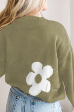 Round Neck Floral Pattern Color Contrast Design Long Sleeve Sweater