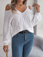 Cable-Knit Cold Shoulder Long Sleeve Sweater