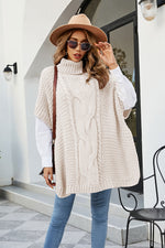 Cable-Knit Turtleneck Slit Sweater