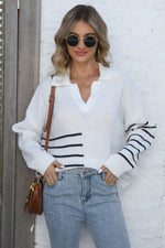 Pattern type: Solid Style: Casual Features: Ribbed Neckline: Notched Length: Long Sleeve length: Long sleeves Sleeve type: Regular sleeves Material composition: 100% polyester Stretch: Moderate stretch Care instructions: Hand wash cold. Do not tumble dry....