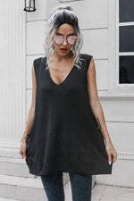 Pattern type: Solid Style: Casual Features: Pockets Neckline: V-neck Length: Long Sleeve length: Sleeveless Sleeve type: Sleeveless Material composition: 100% acrylic Stretch: Slightly stretchy Care instructions: Machine wash cold. Tumble dry low. Imported Product measurements:...