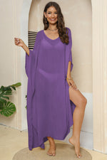 Pattern type: Solid Style: Beach Features: Basic style Neckline: V-neck Sleeve length: Three-quarter sleeves Sheer: Sheer Material composition: 100% polyester Stretch: No stretch Care instructions: Hand wash cold. Do not tumble dry. Imported Product measurements:...