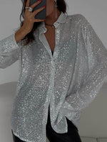 Features: Sequin, Buttoned Sheer: Sheer Stretch: No stretch Material composition: 100% polyester Care instructions: Machine wash cold. Tumble dry low. Imported Product Measurements (Measurements by inches) & Size Conversion Size US Bust Waist Top Length...