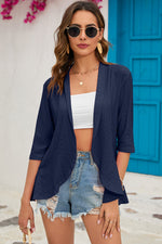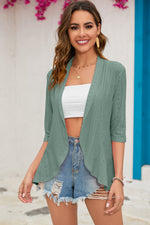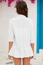 Features: Eyelet Thickness: Normal Body: Not lined Material composition: 65% rayon, 30% polyester, 5% spandex Care instructions: Machine wash cold. Tumble dry low. Imported Product measurements:S:Bust 37.40 in, Sleeve Length 13.39 in, Top Length 27.95...
