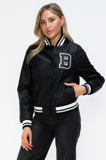 The PU Leather Contrast Snap Down Bomber Jacket is a trendy and sporty addition to any wardrobe. With its PU leather material and snap buttons, this jacket combines edgy style with a classic baseball jacket silhouette. The snap-down closure adds a touch of vintage charm, making this jacket a versatile and stylish choice for casual outings or adding a cool factor to your look. Stay on-trend and effortlessly cool with this must-have piece for your collection.
