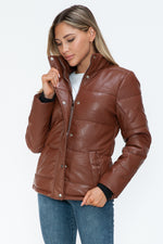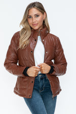 The Pocketed Zip Up Turtleneck Puffer Jacket is a chic and practical choice for colder weather. With its cozy turtleneck design, zip-up front, and convenient pockets, this jacket combines style and functionality seamlessly. Stay warm and stylish wherever you go with this on-trend outerwear piece.