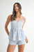 This charming set includes a stripe embroidered peplum cami and matching shorts. The cami features delicate embroidery for a touch of elegance, while the peplum design adds a flattering silhouette. Paired with the coordinating shorts, this set is perfect for a summery and stylish look for various occasions.