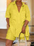 This stylish plus size two-piece set features a relaxed-fit short sleeve shirt with collar and matching shorts in a striking yellow hue. The set is crafted from lightweight, breathable fabric ideal for casual wear. The shirt includes practical chest pockets and a button-down design, while the shorts offer comfort with an elastic waistband. Perfect for summer activities, this set combines style with functionality and can be dressed up or down for various occasions. The material provides ease of movement and all-day comfort.