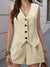 Features:Buttoned Number of pieces:Two-piece Stretch:Slightly stretchy Material composition:100% polyester Care instructions:Machine wash cold. Tumble dry low. Imported Product Measurements (Measurements by inches) & Size Conversion Size Top Length Bust Waist Bottom Length S 22 41.3...