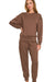 This comfortable brown lounge set features a soft cotton blend construction with an oversized relaxed fit sweatshirt and matching jogger pants. The set includes ribbed detailing at cuffs and hem, elastic waistband for comfort, and a neutral brown colorway perfect for lounging or casual outings. Made from breathable fabric with a cozy feel, this coordinated set offers both style and comfort for everyday wear.