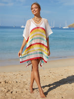 Angel Wings Cutout Striped Cover-Up with Tassel