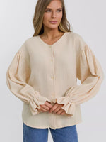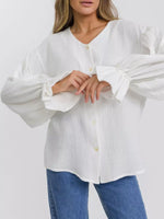 Features: Buttoned, Ruched Sheer: Opaque Stretch: No stretch Material composition: 100% cotton Care instructions: Machine wash cold. Tumble dry low. Imported Product Measurements (Measurements by inches) & Size Conversion Size US Top Length Shoulder Bust...