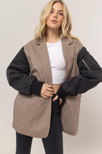 HYFVE Herringbone Mixed Media Contrast Long Sleeve Blazer
