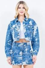 American Bazi Jacquard Trim Cropped Denim Jacket