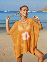 Angel Wings Openwork Flower V-Neck Short Sleeve Cover Up