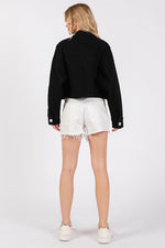 bytos Button Down Cropped Denim Jacket with Patch Pockets