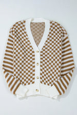 Checkered V-Neck Long Sleeve Cardigan