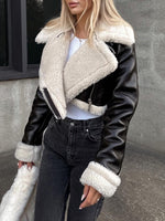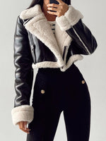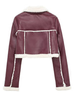 Collared Neck Long Sleeve Plush Cropped Jacket