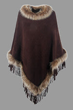 Faux Fur Trim Fringed Poncho