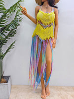 Fringe Scoop Neck Spaghetti Strap Cover-Up