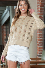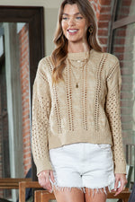 Full Size Openwork Cable-Knit Round Neck Knit Top