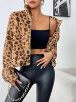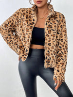 Fuzzy Turtleneck Leopard Zip Up Jacket