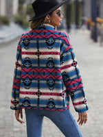 Geometric Button Down Dropped Shoulder Jacket