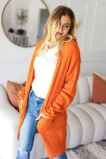 Haptics Full Size Stripe Textured Open Front Cardigan with Pockets