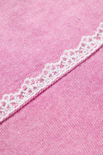 Lace Detail Distressed Raw Hem Long Sleeve Denim Jacket