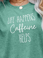 LIFE HAPPENS CAFFEINE HELPS Graphic Tee