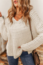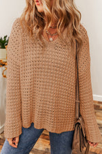 Openwork Round Neck Long Sleeve Sweater