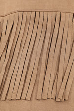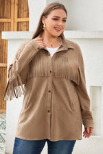 Plus Size Fringe Trim Snap Down Long Sleeve Shacket