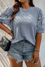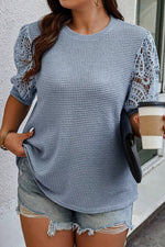 Plus Size Openwork Round Neck Half Sleeve Blouse