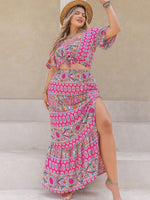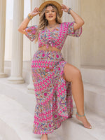 Plus Size Printed V-Neck Half Sleeve Top and Skirt Set