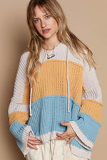 The Color Block Long Sleeve Hooded Sweater is a trendy and cozy wardrobe essential that combines style and comfort effortlessly. Designed with a V-neckline, long sleeves, and a relaxed fit hood, this chenille pullover sweater offers a laid-back yet fashionable look. Featuring rolling edge detailing and a vibrant color block pattern, this sweater adds a modern twist to your ensemble. Perfect for staying warm and stylish during the cooler seasons, this sweater is a versatile piece that can be dressed up or down. Elevate your casual wardrobe with the chic and on-trend Color Block Long Sleeve Hooded Sweater for a contemporary and relaxed vibe. Stay cozy and stylish in this must-have sweater that will keep you looking and feeling great all day long.