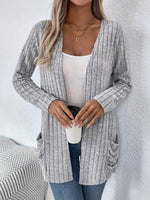 Ribbed Open Front Long Sleeve Cardigan with Pockets