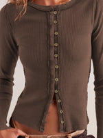 Features: Buttoned, Ribbed Sheer: Opaque Stretch: Highly stretchy Material composition: 92% viscose fiber, 8% elastane Care instructions: Machine wash cold. Tumble dry low. Imported Product Measurements (Measurements by inches) & Size Conversion Size US Top...