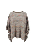 Pattern type: Striped Style: Casual Features: Fringe Neckline: Round neck Length: Long Sleeve length: Half sleeves Sleeve type: Cloak sleeves Material composition: 100% polyester Stretch: Moderate stretch Care instructions: Machine wash cold. Tumble dry low....